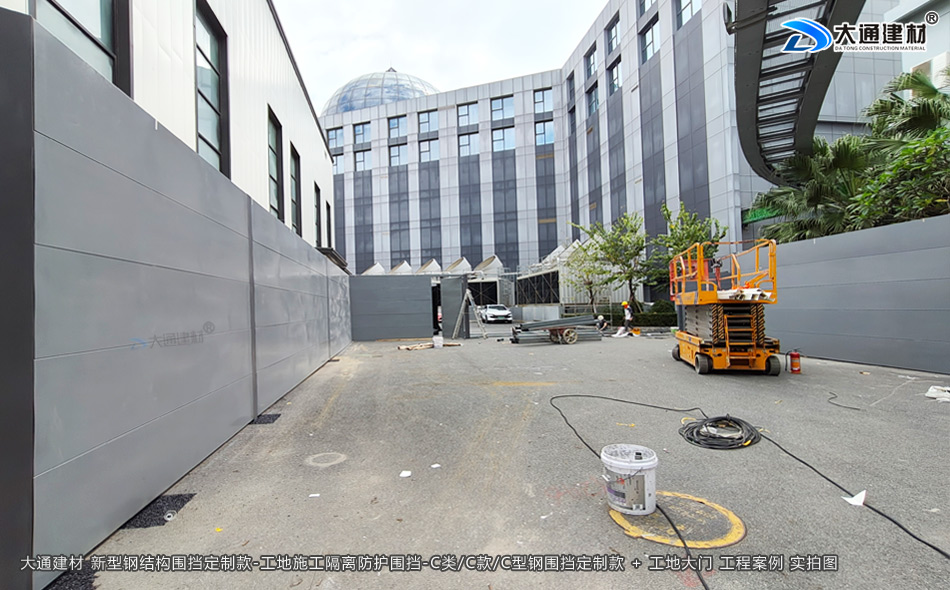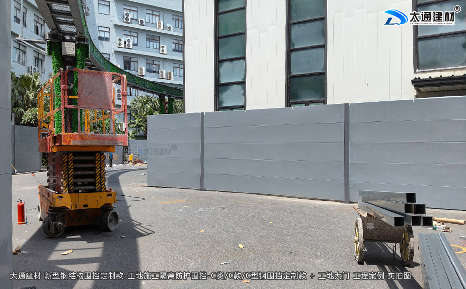 深圳市大通建材C類/C款/C型鋼圍擋生產廠家,大通圍擋可按工地實際情況及需求定制化生產,下面展示的是定制款C類/C款/C型鋼圍擋安裝在深圳龍崗比亞迪改造工程的部分實拍圖
