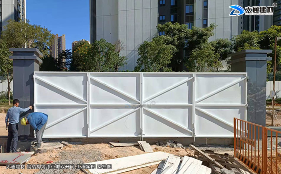 深圳市大通建材為各類項目工程提供 鋼結構烤漆工地雙開門 生產 定制 銷售 配送 安裝等服務