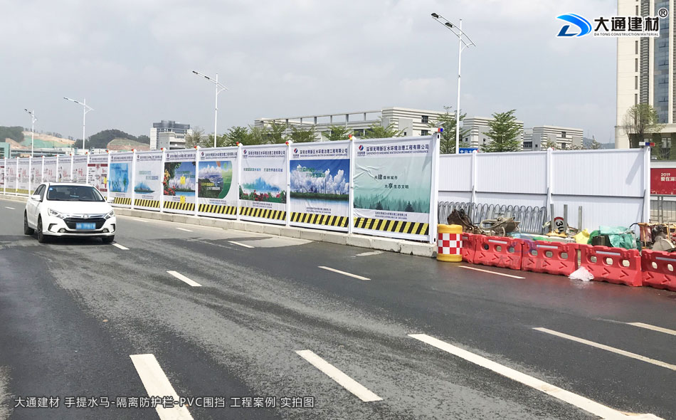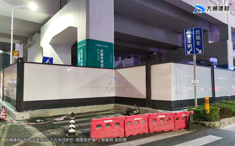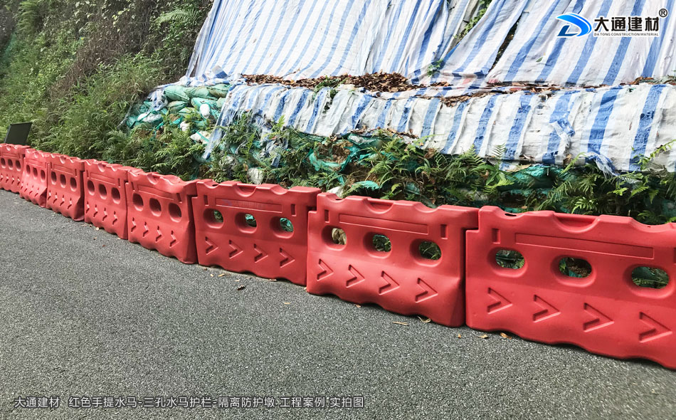 大通建材手提水馬又稱注水水馬、施工水馬、塑料水馬圍欄、塑料圍欄、塑料隔離欄、隔離水馬、交通水馬等,用于城市道路、公路、高速隔離、工地建設、施工地、收費站、路口、廣場、商場引導隔離等地方 臨時分道路使用。