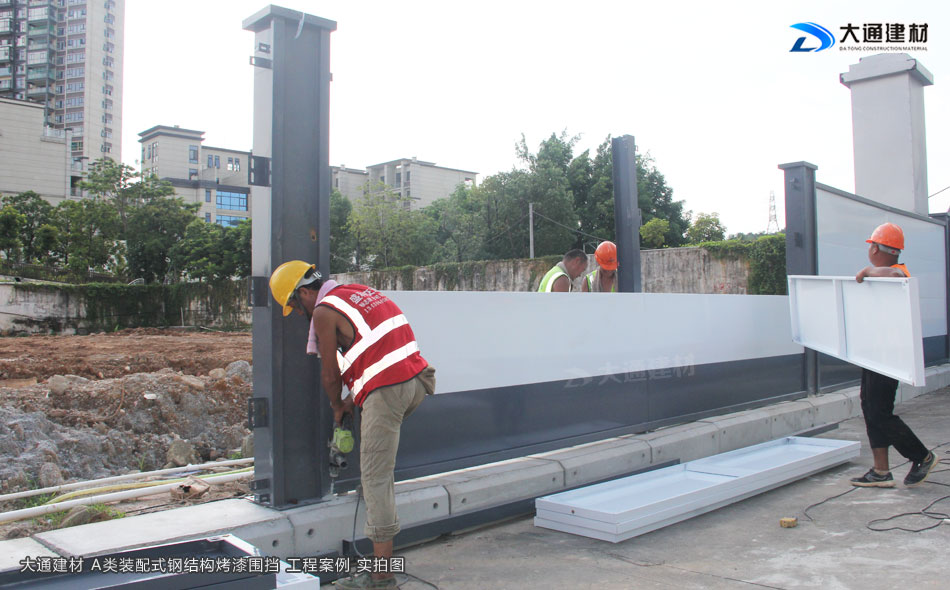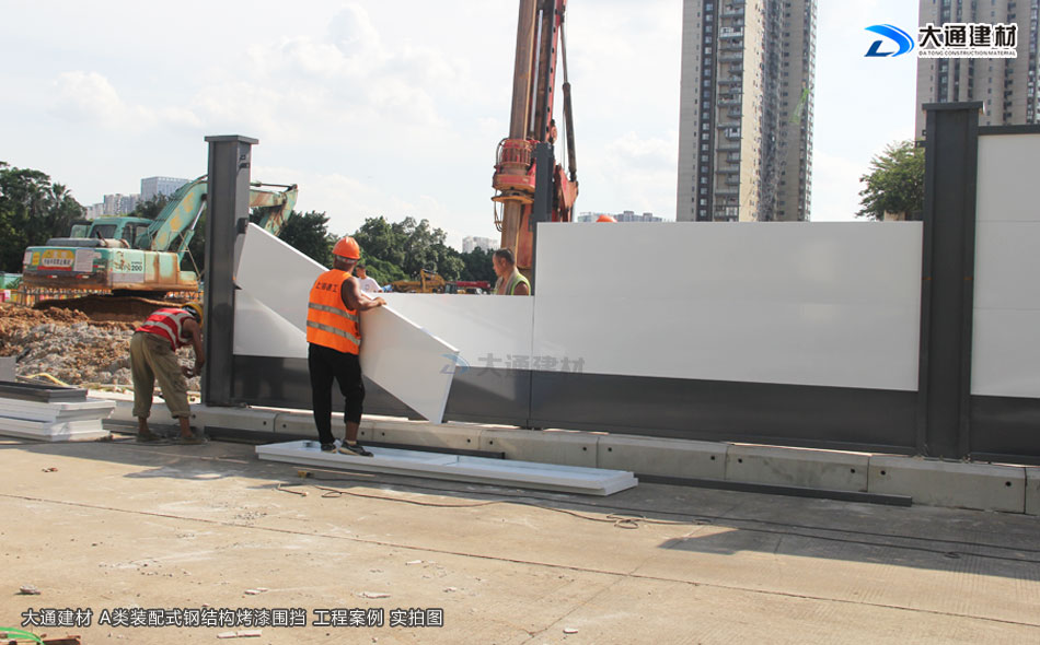 深圳大通建材生產符合惠州市政新標準的惠州圍擋A款,這是一款新型裝配式鋼結構烤漆圍擋,拆裝方便、抗風力強、安全性高,已廣泛應用于惠州各地區的房地產建設工程項目中。