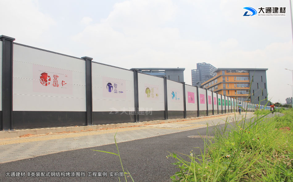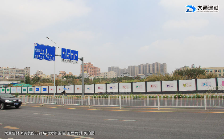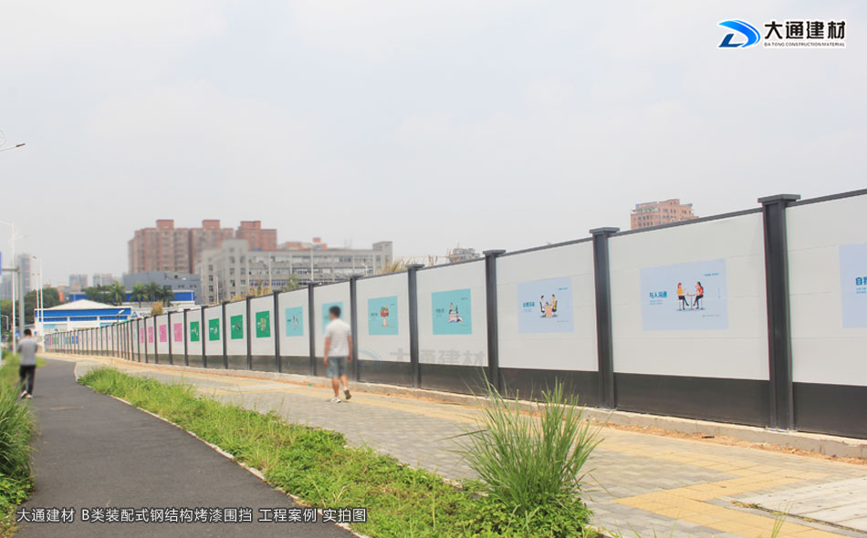 深圳市大通建材有限公司生產(chǎn)的符合深圳標準的裝配式B型圍擋,是一款新型鋼結(jié)構(gòu)圍擋,具體有美觀、環(huán)保、抗風力強等特點,已廣泛應用到深圳特區(qū)建設(shè)的各類施工工程項目中,以下展示的圍擋圖片是大通裝配式B型圍擋應用到深圳龍華觀瀾人民路的工程案例。