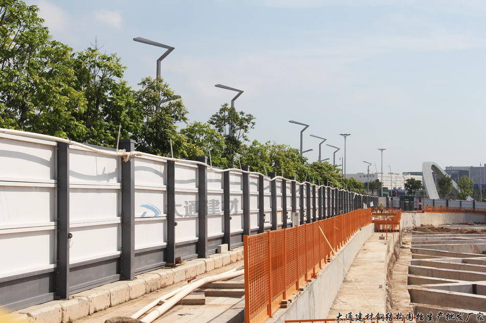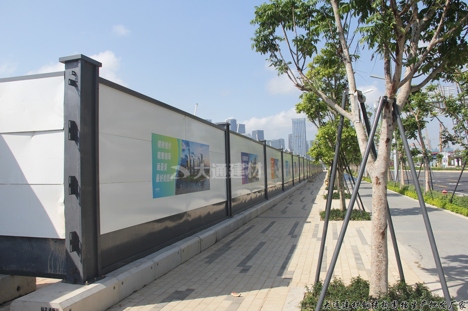 深圳南山區(qū)前灣公園C口施工工程圍擋采用的是深圳大通建材A類烤漆圍擋標準款