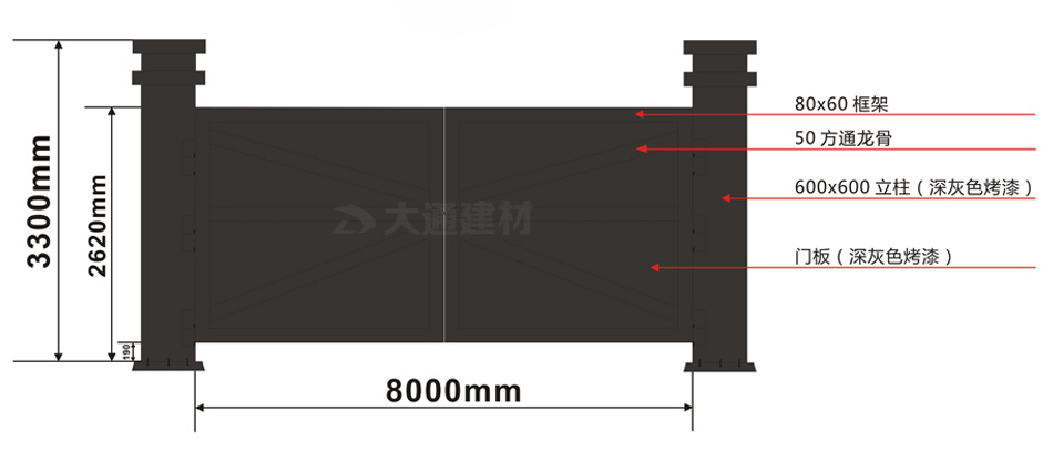 大通鋼結構烤漆款標準工地大門(款式二)規格參數 如下圖