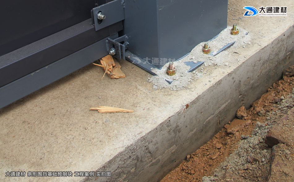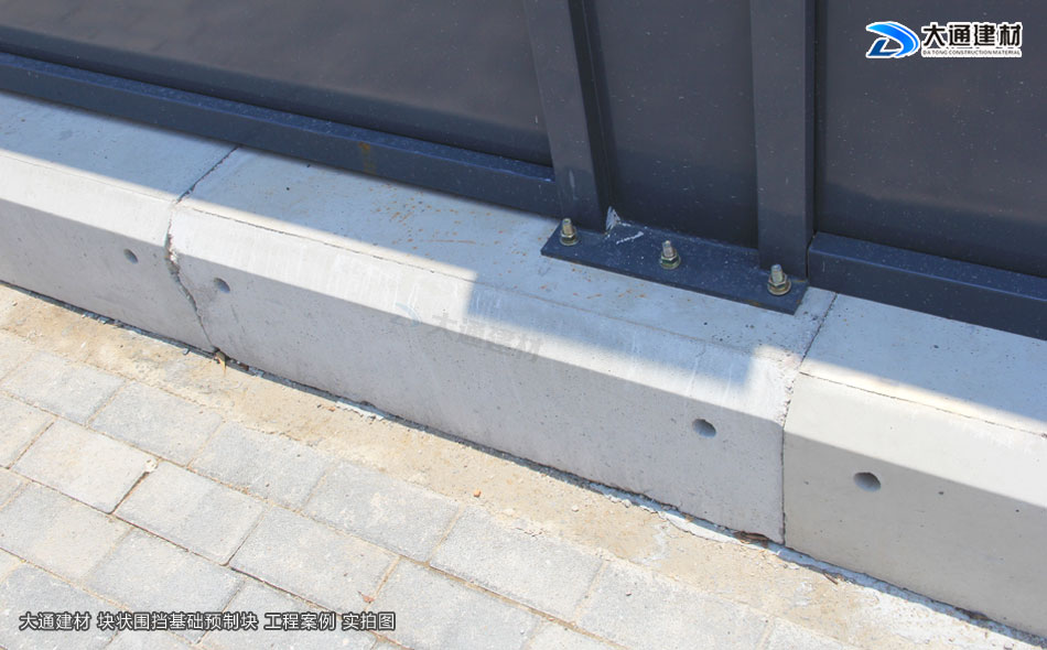 上圖展示的是鋼結(jié)構圍擋立柱與條形圍擋基礎預制塊 安裝效果