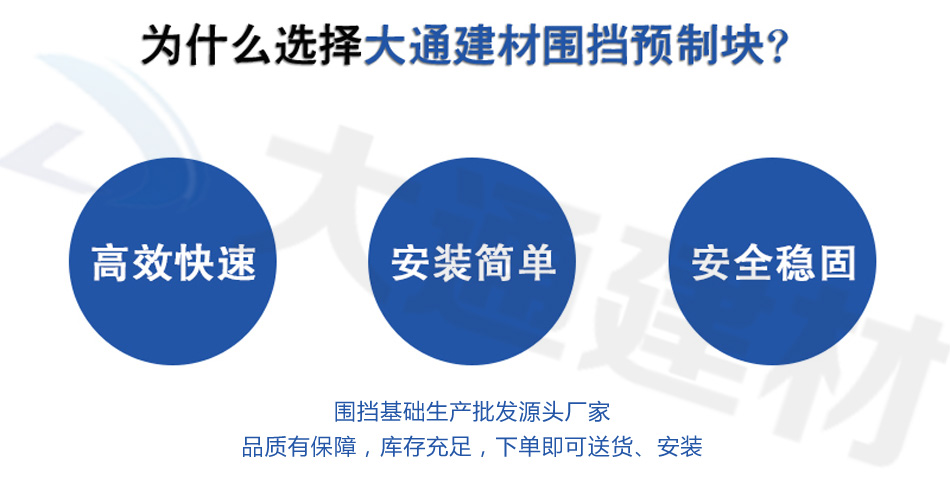 深圳市大通建材有限公司主要生產(chǎn)批發(fā)塊狀圍擋基礎預制塊,基礎塊將圍擋立柱固定在圍擋基礎預制塊上,更安全穩(wěn)固,大通建材圍擋基礎預制塊的常規(guī)尺寸(長寬高):1000mmx600mmx300mm
