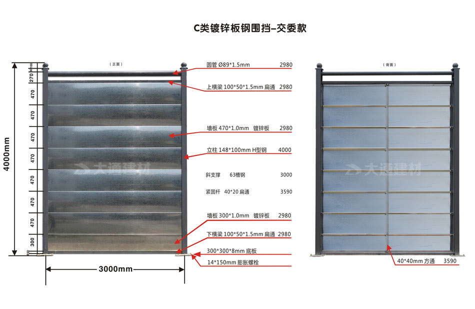 深圳市大通建材 C類鋼結構圍擋 鍍鋅板 H型鋼 4米高定制款 產品特點:
