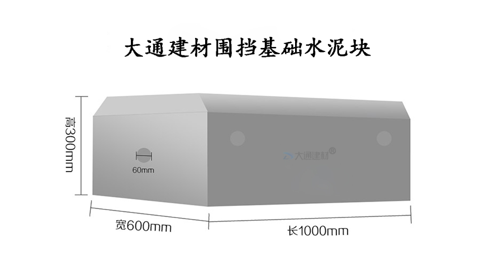 深圳大通建材在東莞設(shè)有專業(yè)的圍擋基礎(chǔ)塊生產(chǎn)基地,貨源充足,大通建材圍擋基礎(chǔ)通常與裝配式鋼圍擋A類/B類/C類一起使用,基礎(chǔ)塊體將圍擋立柱固定在圍擋基礎(chǔ)上,更安全穩(wěn)固。大通建材圍擋基礎(chǔ)的常規(guī)尺寸(長(zhǎng)寬高):1000mmx600mmx300mm(如上圖)