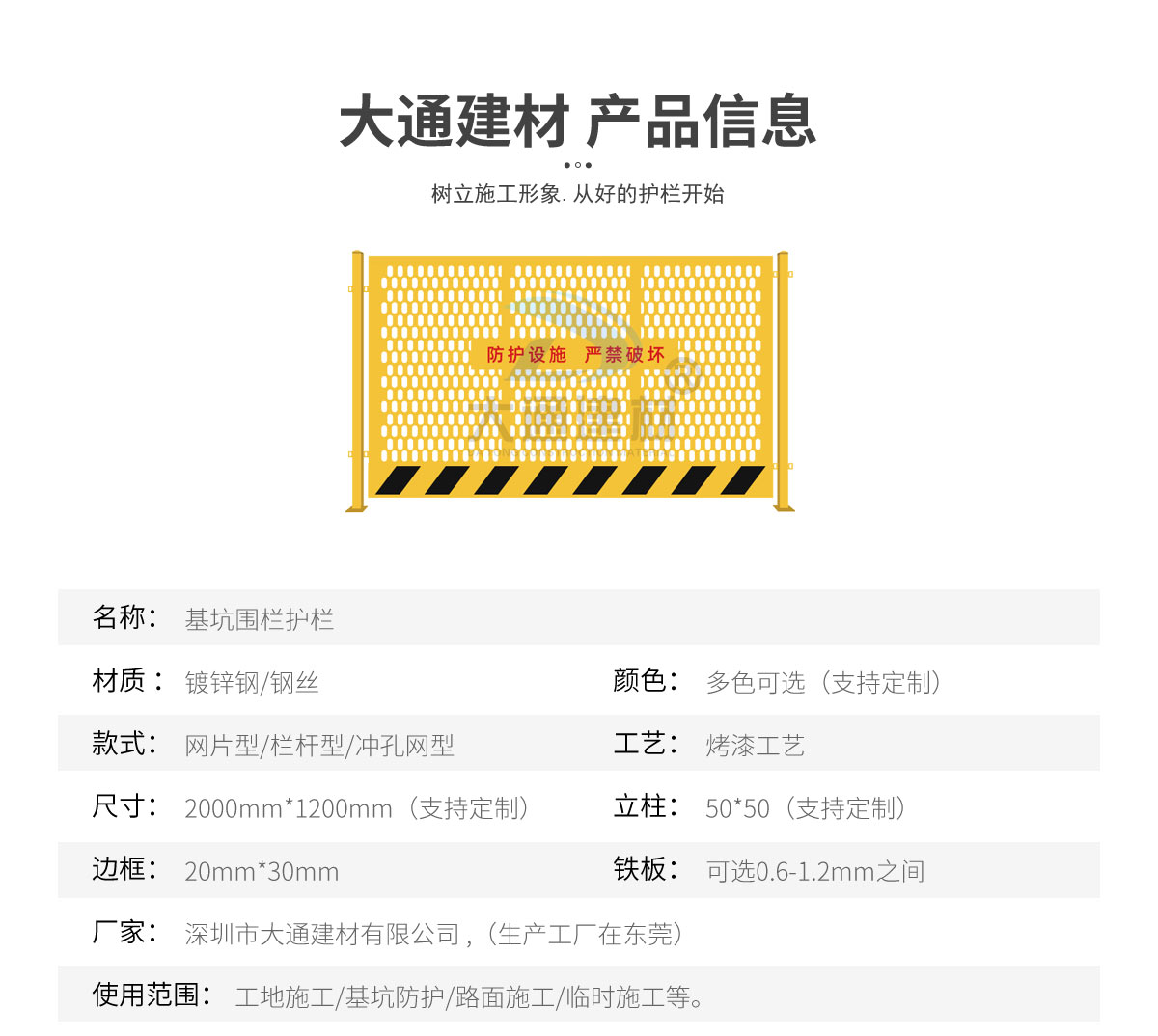深圳市大通建材有限公司是一家集研發、生產、安裝、服務于一體的綜合性圍擋廠家,公司主營產品鋼圍擋、鋼結構圍擋、PVC圍擋、施工圍擋、市政圍擋、工地圍擋、烤漆鋼圍擋,官網:http://www.zhaopinzj.cn/ ,銷售熱線:138 2656 2448