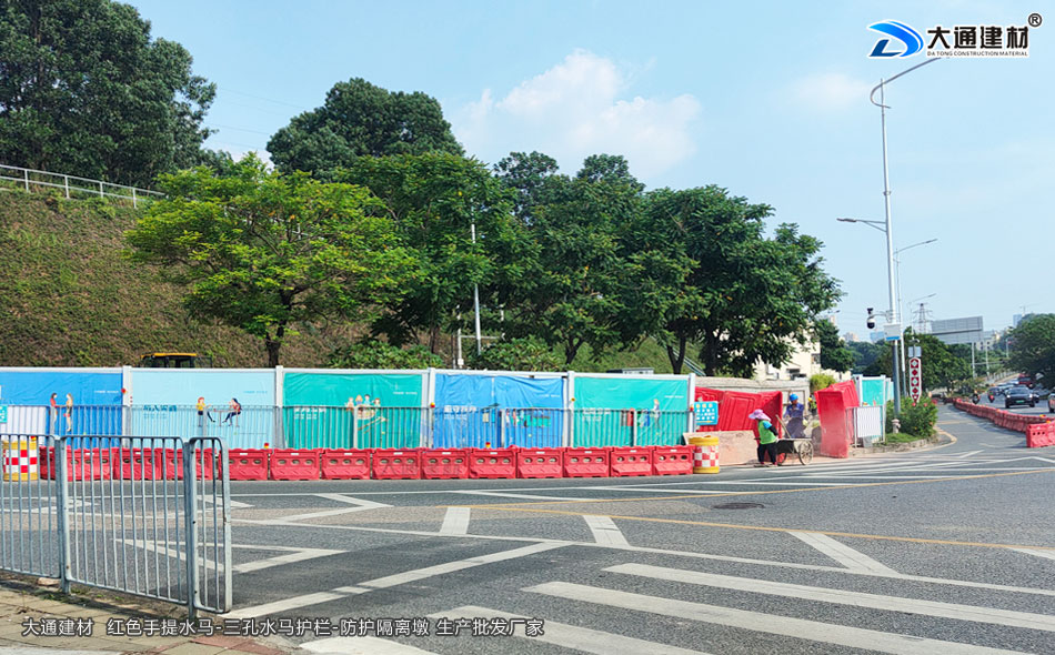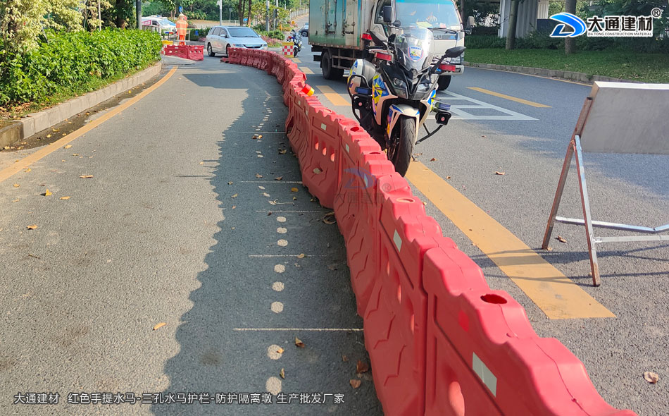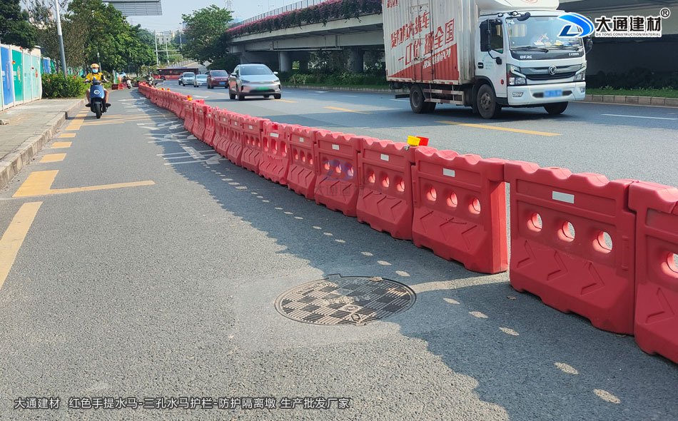 大通建材 手提水馬-紅色水馬護(hù)欄-三孔水馬隔離墩(可注水) 工程案例實拍圖